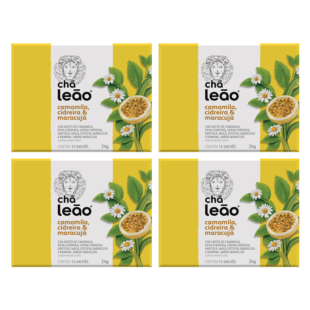 Combo 4cx Chá Leão Camomila, Cidreira e Maracujá 60 un
